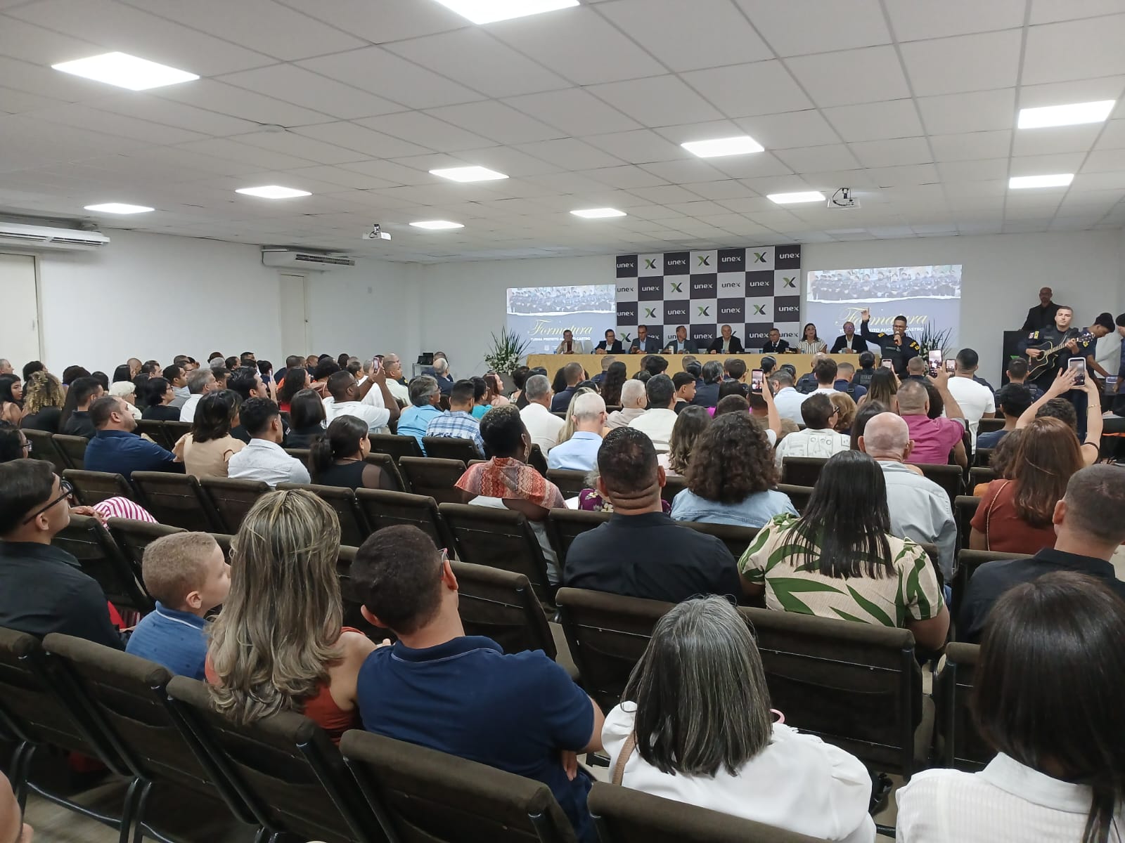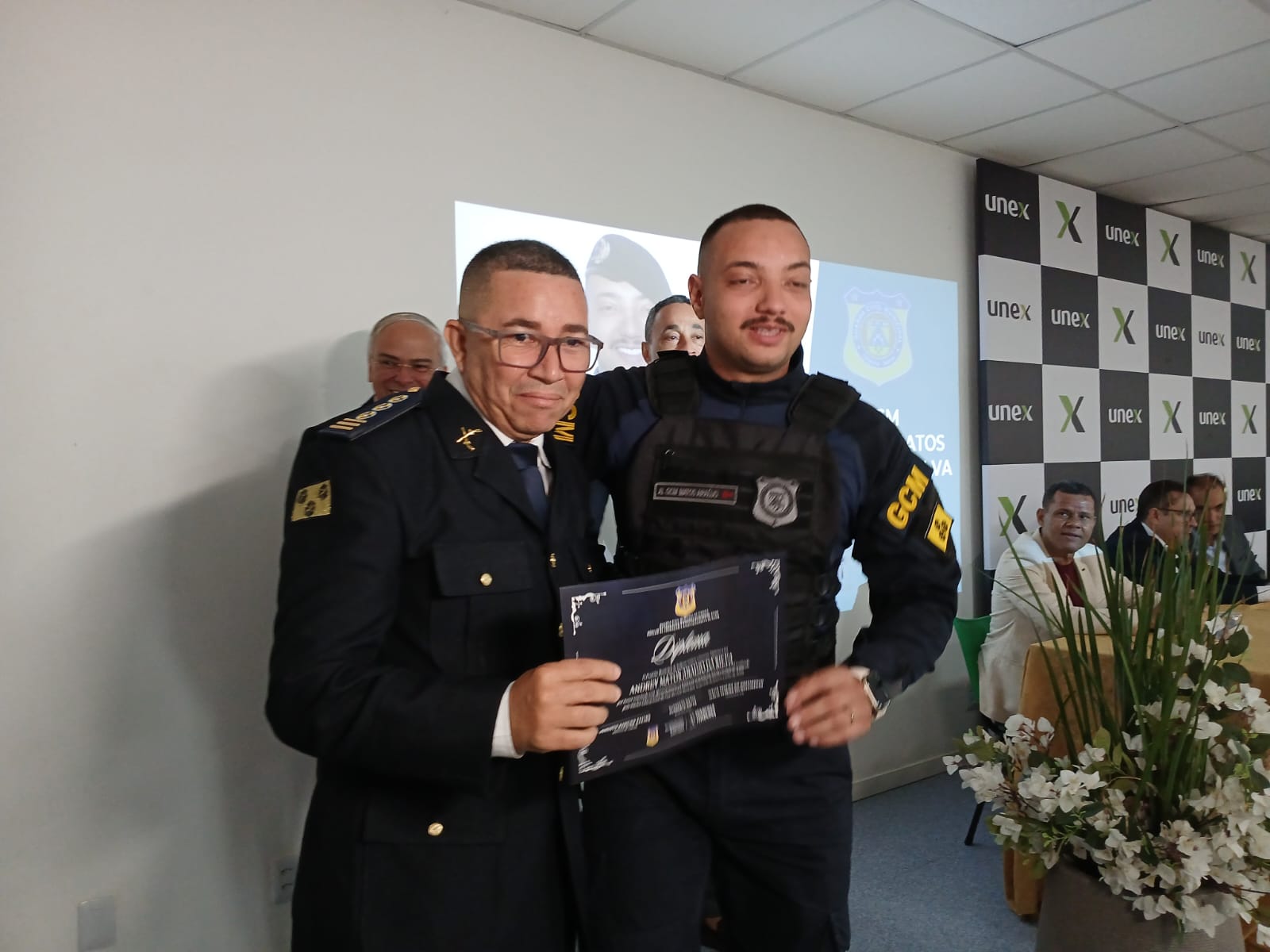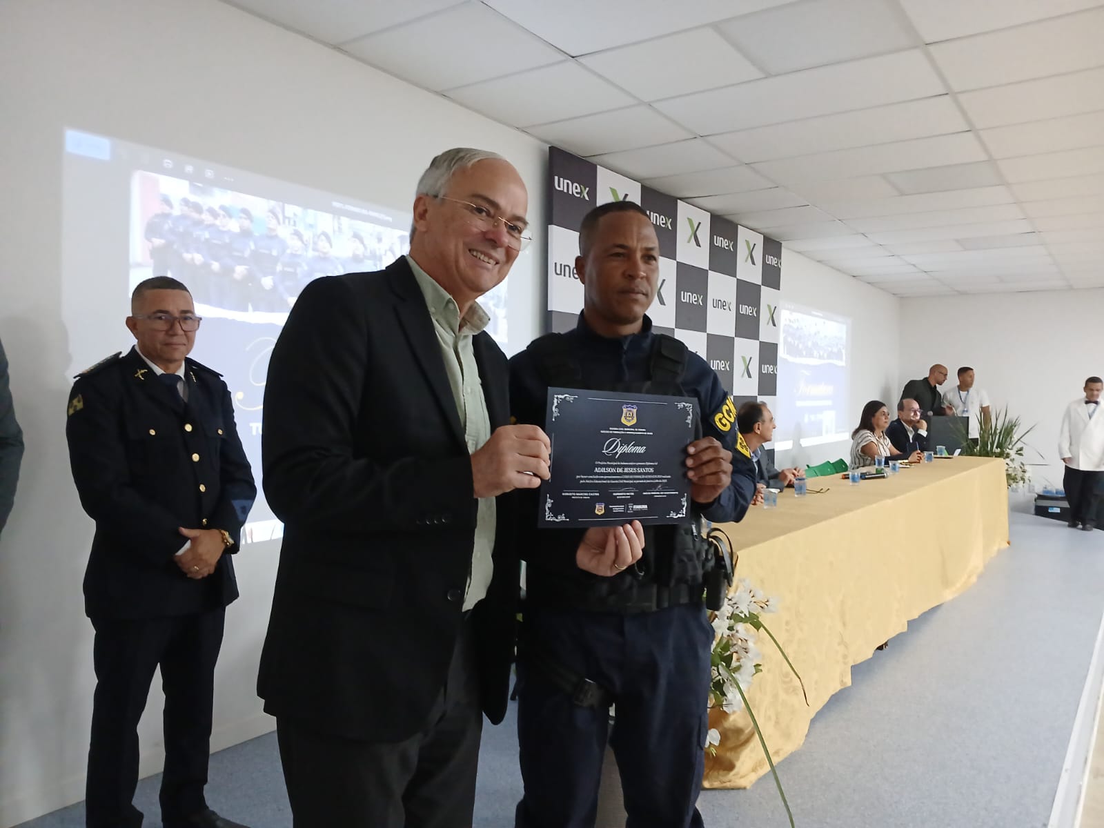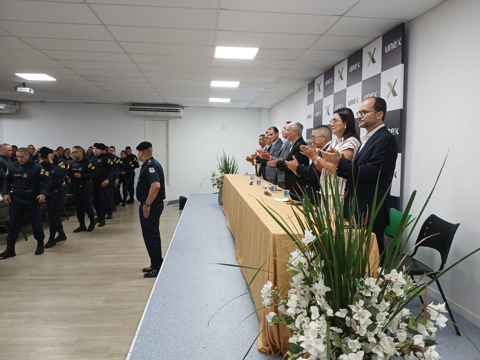 Legenda: Na sexta-feira passada, dia 10, no auditório da UNEX, 18 novos GCMs tiveram a solenidade de formatura. Fotos Divulgação.